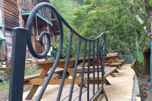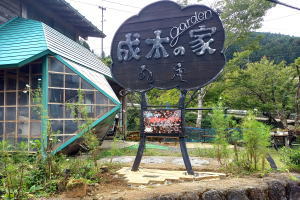 また、成木ガーデンの看板も15年前に、すなわち、成木の家ができたと同時に西田さんが寄贈してくれたものです。これは鉄と地元成木産の杉板でできており、文字に加え、ゆるい感じの自転車乗りとトレイルランナーのシルエットがあります。この施設にこの看板は無くてはならないもので、訪れた人が一目見ただけで、この施設が何であるかを理解できるように作られています。さすが西田です。なお、成木ガーデンには、この他にもベンチやバイクラック等々、西田作品が6個もあります。