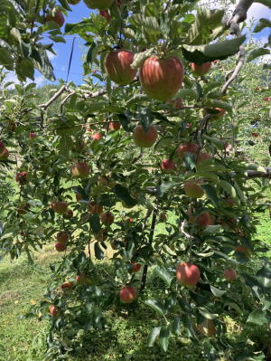 我々が長野県麻績村の川上林檎農園に持つリンゴの木の写真が送られてきました。すでに赤く色づき始めたリンゴがたわわに実っています。この様子だと今年も10月上旬には収穫に行くことになりそうです。