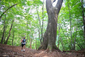 そのアドバイスを受け、昭和村役場にお願いしたところ快諾してもらえました。それで、ようやく今年の第10回大会が開催できたという次第です。苦労の甲斐あって、新コースとなった船ケ鼻登山道はふわふわしたシングルトレイルもあり、この登山道のシンボルである大楢(ナラ)の木があり、見晴らしポイントもあり、それに山頂は1466mあって、夏場でも涼しく、避暑地のトレランとして参加者には大好評でした。因みに、大会会場の赤城林間学園は標高840mもあります。全体的に湿気が少ないのがいい。