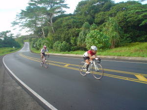 翌日(5日)はパラオ本島一周回のスケールの大きい変化に富んだサイクルレースです。道路の一部に崩落があったので、正確な1周回はできず、約50kmの往復コースになりました。 路面やロケーションは自転車レースに使うには贅沢過ぎる道路です。日本や他の島(サイパン・グアム・ロタ・テニアン)では決して経験できないようなスケールの大きな アップダウンのあるダイナミックなコース。自転車の得意な人にはたまらないコース。参加者には大好評でした。