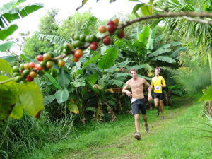第1回大会から第3回大会までは1月開催でしたが、コーヒー豆の実る時季に開催したいという現地の希望で、10月開催に日程を変更しました。お陰で、コーヒー農園では コーヒーの実が赤く色づいて綺麗でした。まるで、サクランボのように見えました。しかし、トレイル脇のジャングルに生息している野生のコーヒー豆は 未だ赤くなっておらず、青いままでした。因みに、英語ではコーヒー豆のことをコーヒー・チェリーといいます。
