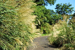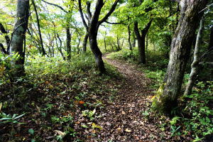 ハイキングコースが道幅の半分ほどが崩落して、深い崖が迫っていた。これらの危機的状況から、一部コース変更しての開催かな、