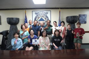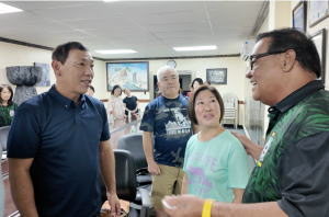 続けて、その日の午後、小山さんは青梅市スポーツ協会の事業部が主催する「サイパン・ヨガ・キャンプ」の参加者と共にサイパン市のカマチョ市長を表敬訪問し、青梅市との草の根交流や青梅サイパン友好都市締結に向けての話をしました。因みに、カマチョ市長は昨年11月に青梅市を訪問し、大勢待市長と会い、すでに両市の友好都市に向けた話し合いをしているという下地があります。