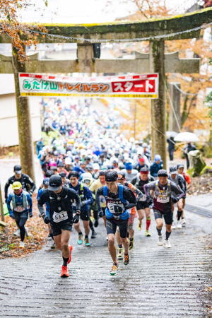 「みたけ山登山競走」は2000年に始り、今年で26年目を迎えるという歴史ある大会です。ケーブルカー滝本駅をスタートし、お土産店街を抜け、ロックガーデンを抜け、山頂の御嶽神社境内下でゴールという御岳山では王道のワンウェイコースです。