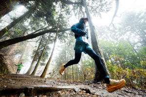 スタート会場は小菅の湯です。今年は小川壮太選手と牧野公則選手を招待してのスタートです。スタート直後に小菅川の源流であるかつての大規模ワサビ田を抜け、明治から百年以上手つかずの原生林が保存されている巨樹の森を目指します。この辺りはミズナラや栃の木が生える広葉樹の美しい森です。足元がふわふわの人気トレイルです。