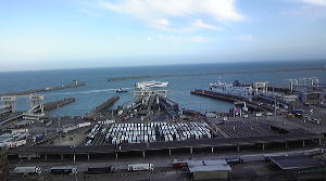 写真は、ホワイトクリフから撮ったドーバー港です。