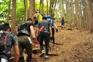 ここを折り返して、黒山山頂まで戻り、東京都と埼玉県の境を尾根沿いに小沢峠まで下り、成木の家近くの中島製材所でゴールするというコース設定た。 このコースには広葉樹の森が多いため、5月の時季は新緑が美しいのが特徴だ。ゴール後、参加者から新緑が素晴らしいコースだったと好評だった。