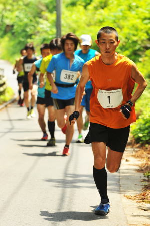 スタートしてまもなく長谷川清勝選手が集団から一人抜け出した。それもそのはず、彼はJR東日本の実業団所属の現役選手だ。過去には、 箱根駅伝も3度出場しており、 東京マラソンも10位に入賞したこともあるエリート選手だ。折返し地点の棒の嶺へはジャスト40分後に到着している。さすがに速いタイムだ。
