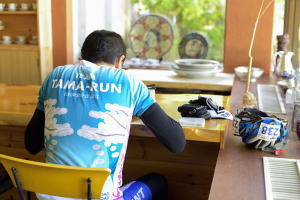 そして、次に「山のふるさと村」にあるサイクルステーション「レストランやませみ」を目指します。 奥多摩湖畔にあるお洒落なレストランです。距離にして約8q先です。 ここでも到着の証であるスタンプを押してもらいます。そして、食事をしたり、コーラを飲んだりし、一休みします。