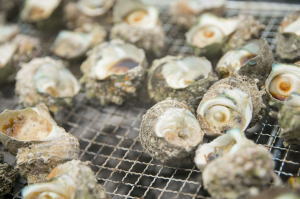 フィニッシュ後、会場の砂浜に設置したサザエの壺焼きブースで、葉山産のサザエに舌鼓を打っていました。これらのサザエは、 この日のために数日前から漁師さんが採ってくれたものです。全部で500個を用意しました。一人1個を決めていたのですが、 途中で品切れになってしまいました。そこで、漁師さんが慌てて船を出して沖に採りに行くという場面ありました。