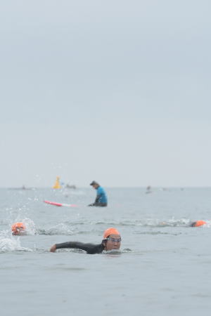 1500m部門のグリーンキャップが全員スイムアップし、海上には4500m部門のホワイトキャップと3000m部門の オレンジキャップだけに なりました。