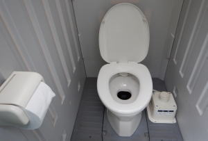 今年初の試みとして、匂いが漏れないという洋式の簡易トイレを置いてみました。以前にはなかった新しいタイプです。
